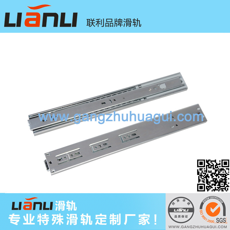 時(shí)間: 2015-03-20 17:41:46 來(lái)源: 東莞市聯(lián)利滑軌制造有限公司滑軌的出現(xiàn)無(wú)疑是家居界的一個(gè)偉大的發(fā)明,滑軌的出現(xiàn)改變了人們的很多生活習(xí)慣,滑軌給人們帶來(lái)了很多的方便和幫助。隨著時(shí)代的發(fā)展,人們生活水平的提高,人們對(duì)于物質(zhì)的要求越來(lái)越高,人們對(duì)于滑軌的要求也越來(lái)越高。自鎖滑軌,主要特點(diǎn)是帶有緩沖自鎖功能,它還具有輕柔平穩(wěn),移動(dòng)無(wú)聲,載重能力好,堅(jiān)固耐用等一系列的優(yōu)點(diǎn)。現(xiàn)在的家居抽屜越來(lái)越大,抽屜也設(shè)計(jì)得越來(lái)越奢華,這種抽屜一般自重都很大,再加上它里面的物體的重量,抽屜質(zhì)量就達(dá)到了比較可觀的重量。我們都知道質(zhì)量大的物體,我們推拉起來(lái)就費(fèi)勁,所以抽屜關(guān)閉的密封性就成了問(wèn)題。沒(méi)有關(guān)閉的抽屜對(duì)于滑軌和抽屜本身都是一個(gè)很大的負(fù)載,長(zhǎng)久這樣使用損壞抽屜。使用自鎖滑軌就完全沒(méi)有這些煩惱,自鎖滑軌只要你輕輕一推它就會(huì)自動(dòng)閉合自鎖,這樣不但保護(hù)了你物品的安全,達(dá)到了防盜的功能,還充分發(fā)揮了你的抽屜的保存物體的功能。帶自鎖的滑軌是現(xiàn)代家居的必選功能之一。