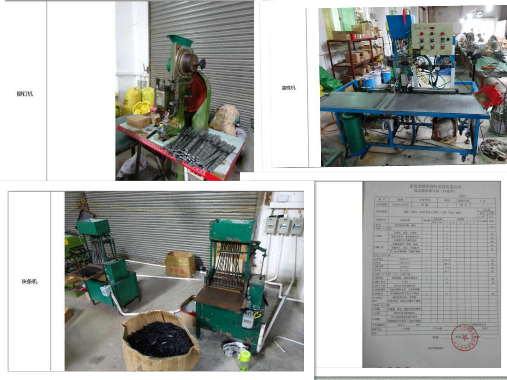 聯(lián)利滑軌(三節(jié)滑軌)的組裝流程是用鉚釘機(jī)裝可拆卸的塑料件(也叫小鳥件,滑軌在拆卸分離的主要配件),接著中軌和珠糟使用裝機(jī)機(jī)組裝,只需要人工把中軌和珠糟放在裝珠機(jī)的固定位置,裝珠機(jī)會(huì)自動(dòng)組裝好,中軌和珠糟之間的潤(rùn)滑油也是這個(gè)時(shí)候已經(jīng)涂好,(潤(rùn)滑油起到潤(rùn)滑、輔助冷卻等作用,滑軌有鋼珠的地方都會(huì)涂上潤(rùn)滑油,可以使滑軌推拉更順暢)而外軌和中軌之間滑動(dòng)的是靠?jī)蛇叺乃芰现闂l來滑動(dòng)的,塑料珠條和鋼珠的組裝是用珠條機(jī)完成的,機(jī)器成型珠條鋼珠,鋼珠更加牢固,不會(huì)出現(xiàn)掉珠的情況。以上組裝主要是靠機(jī)器完成的,接下來就到了人工組裝環(huán)節(jié),把中軌和內(nèi)軌對(duì)準(zhǔn)推進(jìn)去,然后我們把塑膠珠條放在外軌內(nèi)側(cè),一邊一條,這個(gè)時(shí)候需要人工涂潤(rùn)滑油涂在塑膠珠條上,再把已經(jīng)組裝的中軌對(duì)準(zhǔn)外軌推進(jìn)去,滑軌的外、中、內(nèi)軌就組裝完成了,最后,把檔膠和卡扣裝上去,檔膠是起到滑軌關(guān)閉時(shí)候有卡住的功能,卡扣是防止中軌珠糟在推拉的時(shí)候掉出。滑軌全部組裝成功后,人工再推拉幾次滑軌,滑軌推拉順暢就代表滑軌組裝沒有問題。